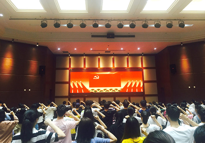 在“七一”到来之际,学院党委组织开展“一颗红心跟党走,十大活动庆‘七一’”纪念建党97周年系列活动。作为活动之一,6月20日晚上,学院党委书记郑雅萍带领全体新发展党员面对党旗进行集体宣誓,并讲授《坚定理想信念,做担当民族复兴大任的时代新人》的专题党课,全体组织员、新发展党员共计150余人到场认真聆听。