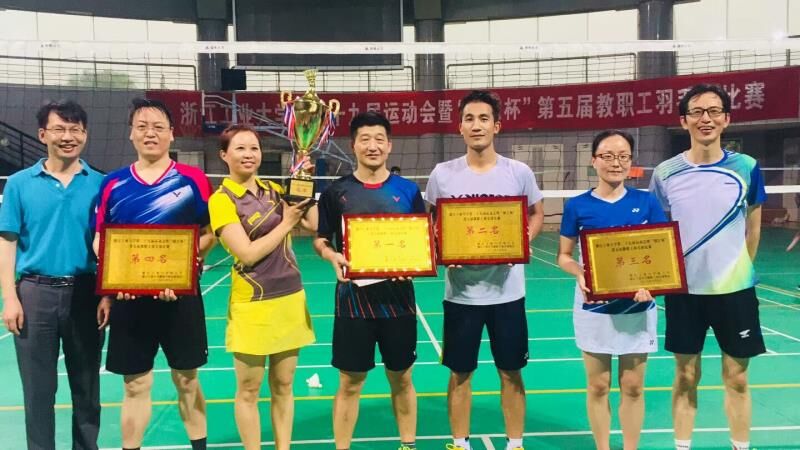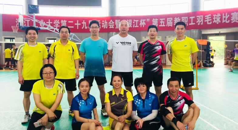 6月9日,浙江工业大学第二十九届运动会暨“银江杯”第五届教职工羽毛球比赛在屏峰校区体育小馆举行。由学院党委副书记黄新敏领衔的学院教工代表队,经过4轮5场比赛的角逐,一路过关斩将,以全胜战绩勇夺桂冠。“银江杯”教职工羽毛球团体赛每两年举办一次,我院教职工代表队连续第三次获得冠军。