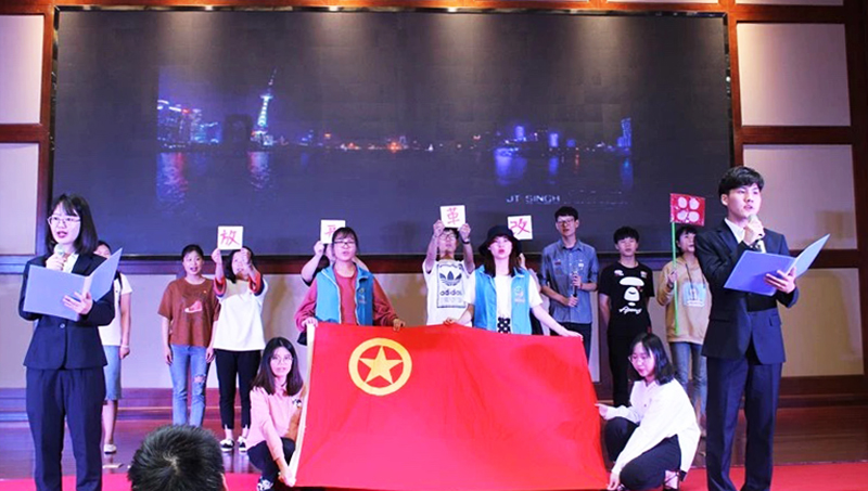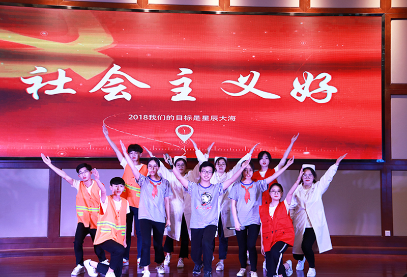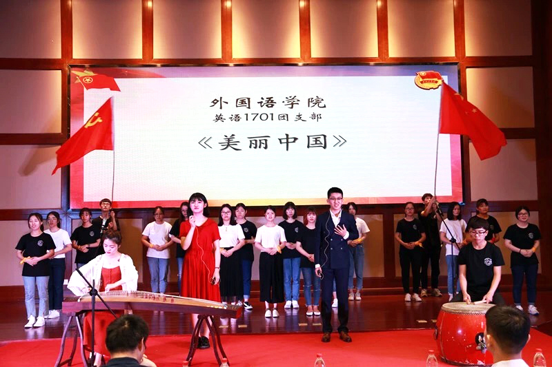 总决赛分“阳光伙伴”、“现场投票”、“亮出名片”、“特写青春”等四个环节,参赛的11个基层团支部广泛开展“学习党的十九大精神”、“学习习近平新时代中国特色社会主义思想”、 “纪念改革开放40周年”、“美丽中国”“一学一做”、“文明修身”等主题团日活动,尽情挥洒基层团支部的活力和风采。各支部代言人从班团建设、学风建设、集体生活、文体锻炼、成果分享等方面对团支部进行了生动详实的介绍,情真意切、感人肺腑,并通过小品、歌舞、诗朗诵、器乐演奏、情景剧等方式进行了精彩纷呈、内容丰富的舞台展演。各支部广大团员青年激情澎湃、歌舞青春,生动展现了新时代大学生的创新创意、蓬勃朝气和坚定信念。比赛中,学院大学生艺术团带来的合唱《我爱你,中国》和朗读社带来的诗歌朗诵《五四铭诗》表达了我院学子弘扬“五四”精神、勇担历史使命的雄心壮志,将现场气氛推向高潮。