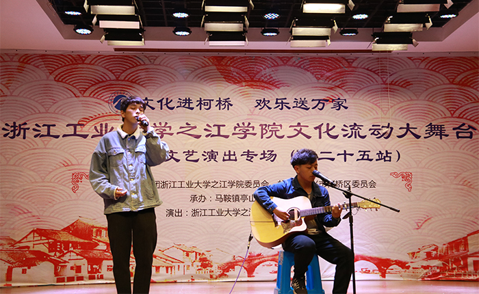 晚会共分魅力马鞍、活力之江、印象柯桥三个篇章。晚会上,大学生们带来的街舞《Sky》激情四射,迅速点燃了现场气氛。独唱《广东爱情故事》、《说散就散》、《春风十里》,对唱《世界上另一个我》,小组唱《我爱你中国》时而婉转悠扬、时而慷慨激越,带给观众全新的视听感受;古筝独奏《渔舟唱晚》、吉他弹唱《成都》、小提琴独奏《新疆之春》、葫芦丝独奏《一醉柯南》、民谣弹唱《走马》韵味浓郁,融合民族风情和现代曲艺,将器乐的魅力展现得淋漓尽致;拉丁舞《炫舞飞扬》、群舞《牵丝戏》节奏轻快、动感十足,一张一弛间展现了我院大学生的青春活力。晚会在大合唱《国家》中达到最高潮,现场气氛热烈、掌声不断。