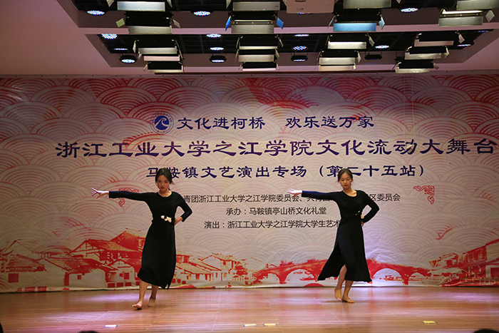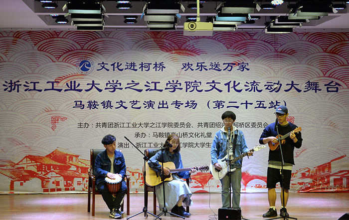 4月14日晚,学院百场文化下乡演出第二十五站活动在柯桥区马鞍镇亭山桥村文化礼堂举行。当地400余名群众观看了演出。