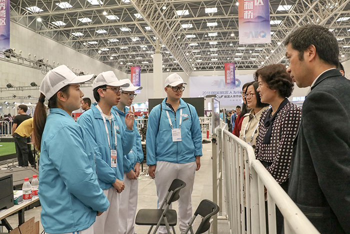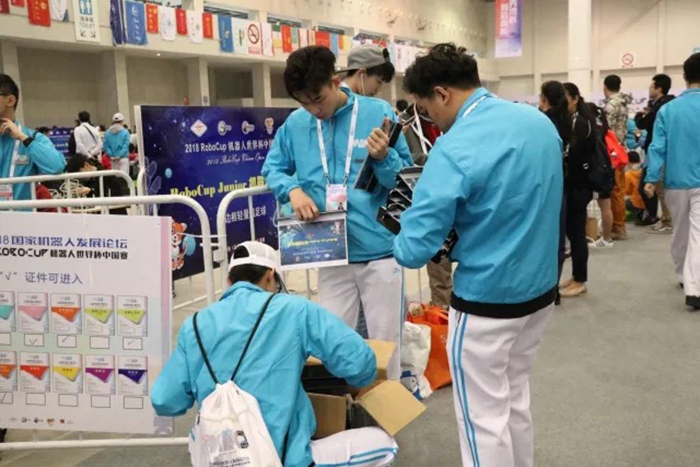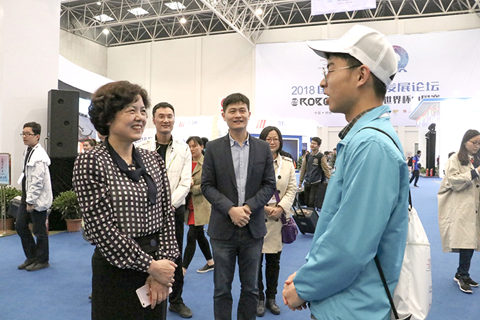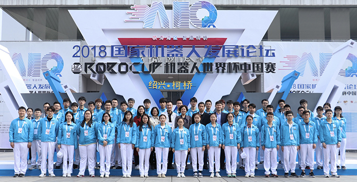 4月15日,2018年国家机器人发展论坛暨RoboCup机器人世界杯中国赛组委会成员、学院党委书记郑雅萍专程来到柯桥区中国轻纺城国际会展中心,看望慰问我院信息工程学院“小桔灯”志愿者,柯桥团区委、学院团委、信息工程学院相关负责人陪同看望。