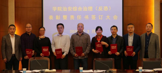 3月28日下午,学院综合治理(反恐)表彰暨2018年责任书签订会议在行健楼215召开。出席和参加会议的有学院副院长、治安综合治理(反恐)委员会主任陈金友、治安综合治理(反恐)委员会委员和各部门(单位)综治责任人。