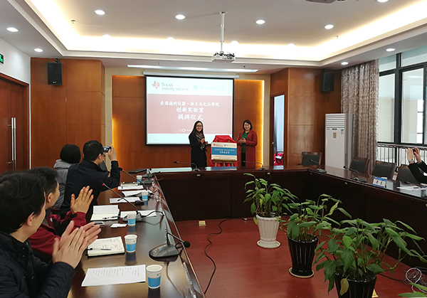 王沁在启动仪式上表示,在前期双方多次沟通交流和现有合作基础上,TI公司决定与学院共建创新实验室,并以创新实验室建设为载体,双方将进一步加大大学计划项目的合作力度,支持和赞助学生创新和学科竞赛能力的提升,提高学生的实践能力,推进实施产教融合校企合作,助力之江学院应用型创新型人才的培养。学院教务部负责人介绍了学院的基本情况,并与王沁女士共同为共建创新实验室揭牌。揭牌仪式后,王沁在行健楼113报告厅为师生作了助力工程师的讲座。