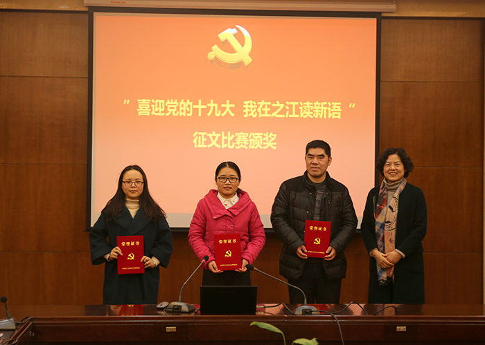 述职会后,学院进行了“喜迎党的十九大 我在之江读新语”征文比赛颁奖仪式。