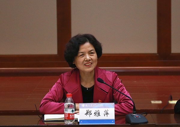 座谈会上,郑雅萍认真听取了师生党员深入学习十九大精神的心得体会,肯定了教师党员们积极投身科研、教书育人的辛勤付出和学生党员们在日常学习中所表现出来的先锋模范作用,并重点对贯彻落实党的十九大精神,深入学习习近平新时代中国特色社会主义思想,努力培养中国特色社会主义合格建设者和可靠接班人提出了三点希望和要求:(1)青春应当赋予理想。青年学子要树立远大的理想,将个人理想融入中国梦,把个人的奋斗目标融入到中华民族的奋斗目标,不忘初心,牢记使命,在中国梦的伟大实践中,放飞青春梦想,在为人类利益的不懈奋斗中,书写精彩的人生华章。教师党员要在学习领会十九大精神的实质上下功夫,深入学习习近平新时代中国特色社会主义思想,贯彻落实十九大对高等教育提出的新部署新要求,做到与全面实施学院“十三五”规划相结合,将学习十九大精神的过程转化为解决实际问题的思路,在教学、科研、社会服务和文化传承创新中精准施策。(2)青春应当脚踏实地。青年学子在进行伟大斗争、建设伟大工程、推进伟大事业、实现伟大梦想的过程中,要用实实在在的行动去践行使命,坚定学习目标,珍惜学习机会,勇于创新、敢于挑战,努力提升自己,为将来步入社会和职业发展打下坚实的基础。教师党员要爱岗敬业、立德树人,尊重个体、因材施教,重视课堂思政教育,把所学、所思、所感、所悟传达给每一位学生,做学生成长道路上的引路人。(3)青春应当勇立潮头。“青年一代有理想、有本领、有担当,国家就有前途,民族就有希望。”师生党员要争当学习十九大精神的学习者、传播者、践行者,用习近平新时代中国特色社会主义思想武装头脑、指导实践、凝聚力量,真正起到党员的模范带头作用;要牢固树立正确的世界观、人生观、价值观,不断提升理想抱负水平,自觉将人生追求融入学院发展的过程中,为国家、社会、学校的发展做出积极的贡献。