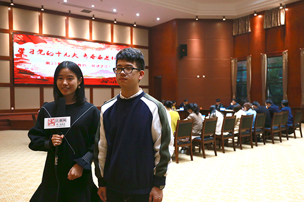 外国语学院李梦娇同学、理学院赏梦奇同学认为,大学生党员必须在学习贯彻十九大精神上更加自觉、更加深入、更加有效,坚定不移沿着中国特色社会主义道路前进。