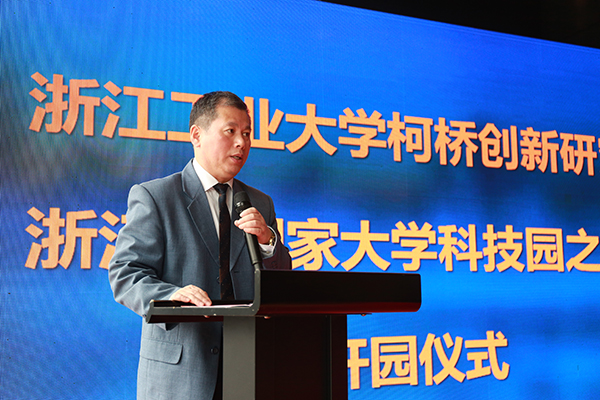 华尔天在致辞中指出,浙江工业大学柯桥创新研究院、浙江省国家大学科技园之江园成功开园,这是之江学院搬迁到绍兴柯桥以后,在“面向地方、产教融合、开放办学、共同发展”的办学理念指引下,获得的又一项重大成果,标志着之江学院向产学研融合又迈出了坚实的一步。研究院、之江园以绿色印染与智能化制造、高端纺织与时尚创意设计、绿色建筑、电子信息、生命健康等领域为主导,发挥柯桥区产业带动优势,实现柯桥区高新技术产业集群发展。希望研究院、之江园成为科技创新成果转化、高新技术企业孵化、创新创业人才培养的新高地,成为高校、政府、企业合作的高端平台,为柯桥的经济发展提供有力的科技和人才支撑。
