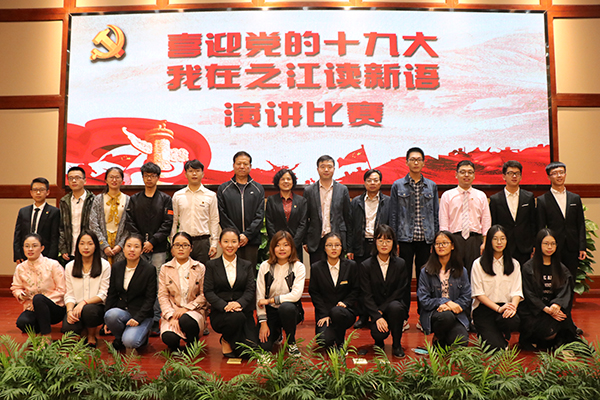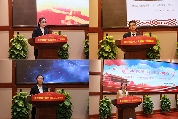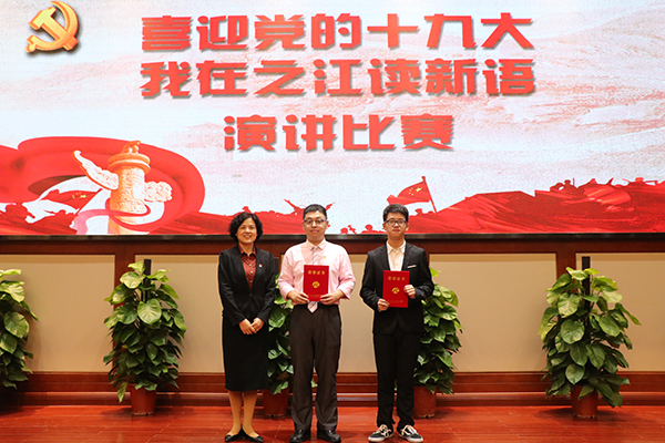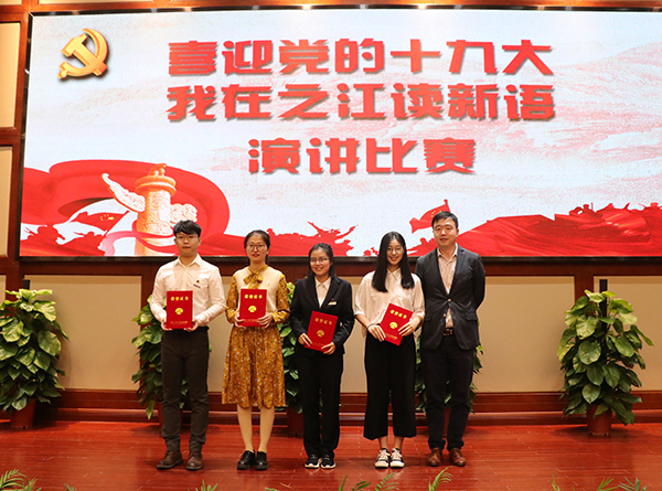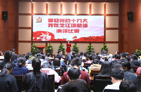 10月16日,学院“喜迎党的十九大,我在之江读新语”主题演讲比赛在行健楼117报告厅举行。学院党委书记郑雅萍到场观看比赛并为获奖选手颁奖。浙江工业大学党委宣传部副部长贾侃、学院党委副书记黄新敏、浙江工业大学教授王福和、学院组织人事部部长何朝阳、学院工会主席罗志尧等担任比赛评委。学院相关职能部门负责人,各党总支(直属党支部)负责人、师生代表共300余人参加了活动。