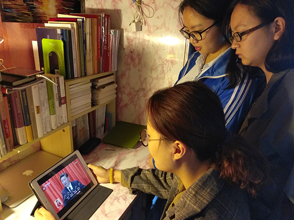汉语国际教育1501肖徐琴说,今天我们观看十九大召开,让我更加深刻的认识到作为一名学生党员,不仅要关注学习,更要将理论结合实际,将自己所学的专业知识立足于实践中去。我决心严格要求自己,努力学习,进一步提高自身的各项综合能力和水平,不忘初心跟党走,努力向优秀党员的目标前进。