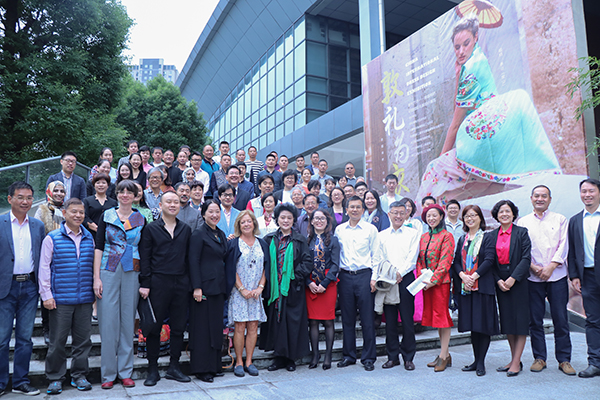 敦礼为衣——首届柯桥•中国国际礼服设计展开幕式于2017年10月14日在我院举行。中国纺织服装教育学会秘书长纪晓峰,绍兴市柯桥区区委常委、组织部部长孙彦,中国纺织工程学会服装服饰专业委员会秘书长徐宏,中华服饰文化研究会会长张雪扬,浙江省非物质文化遗产保护中心办公室副主任李晖,绍兴市柯桥区文广局局长钱清华,绍兴市柯桥区委宣传部副部长章慧娟,绍兴市柯桥区科技局副局长俞小炜,中国纺织工程学会服装服饰专业委员会主任、上海视觉艺术学院科研处长谢琴,浙江省民间美术家协会荣誉主席、浙江省非物质文化遗产保护专家委员会主任都一兵,学院院长李澎林,党委书记郑雅萍等领导和嘉宾出席此次活动。