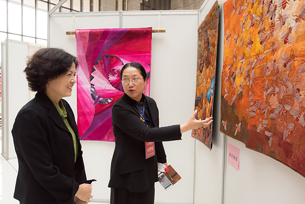 为挖掘和培育设计类专业人才,培养创新设计新力量,为广大手工文化爱好者和从业者提供一个传播、交流、学习的平台,在各级院校和相关领导的支持下,2017第三届中国拼布创意设计大赛暨国际拼布学术研讨会10月13日在我院举行。中国纺织教育学会秘书长纪晓峰、原中国美术学院副院长孟云生、原省经信委副主任高建明、原绍兴人大副主任舒炳炎、学院党委书记郑雅萍、绍兴市委宣传部创意产业处处长吴萍、柯桥区宣传部副部长章慧娟、柯桥区经济和信息局局长倪仁龙、柯桥区教育局局长何其洪、兰亭镇人民政府镇长邵世昉、柯桥区科技局副局长赵奕方、柯桥区教育局副局长倪国兴、柯桥区文广局副局长艾和飞等领导、企业家和国内外知名艺术家参加此次论坛。