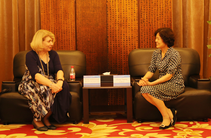 讲座后,学院党委书记郑雅萍会见了戴安娜•希尔德布兰特院士一行,双方就进一步合作进行了深入交流。