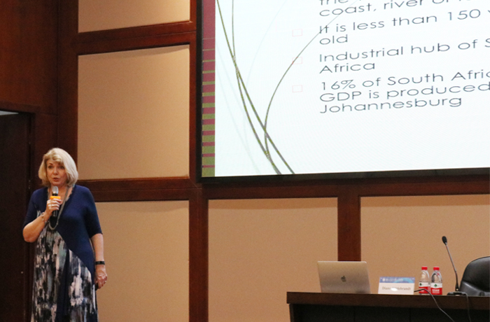 讲座中,戴安娜以介绍南非的第二大城市“黄金之城”约翰内斯堡为切入点,引出了历史悠久的南非大学,对其理工学院进行了简要的概述。随后,她运用大量的图片、数据和案例,展示了部分落后地区的环境破坏、社会矛盾、能源浪费等对当地社会面貌产生的严重破坏作用,引发现场同学们深深的思考。接着,她提出了生活废弃物作为可持续能源的合理利用对资源再生和环境保护的巨大作用,并详细阐述了能源循环的各个环节,分享了通过科技改造后的废物再利用技术。她还结合废弃物能源利用的核心理念,讲述了非洲和发展中国家通过战略合作将废弃物和其它未充分利用的资源转化为燃料、电力和就业前景的重要意义,指出以环境转化为基础的科学技术,必须基于开源节流的发展规划和模块化、柔性化的可持续发展思路,并鼓励大学生们能时刻保护环境,珍惜美好的生活家园。讲座最后,她就新能源利用现状、废弃物能源技术障碍突破等问题与现场师生进行了热烈的互动交流。