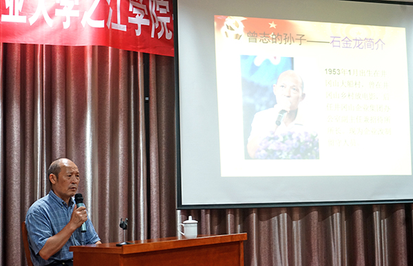 井冈山革命传统教育研究院副院长郝立志对之江学院的参训干部表示欢迎并预祝本次培训获得圆满成功,陈金友和郝立志共同向培训班班委进行授旗。