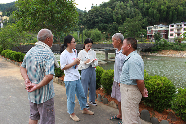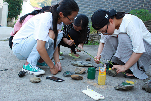 实践队一行21人首先来到下姜村,近距离聆听老支书姜银祥讲解习近平总书记在此联系指导工作时的故事,认真学习总书记在这里首次对党员提出从“四有”做到“四种人”的讲话要求。队员们还参加了村里组织的党员教育培训活动,现场接受了党性教育。他们走进农家院落,专门设计调查问卷,实地调研下姜村坚持“绿水青山就是金山银山”的发展理念给当地经济社会带来的巨大变化。随后,实践队一行前往伊川村,参与了当地开展的“四清四美”专项行动,队员们运用所学的专业知识,提出了村庄的美化设计方案,他们挨家挨户走访,采纳村民的意见建议,多次讨论、反复修改,最终历时三天,完成了庭院设计、墙绘、公厕等美化方案,并因地制宜利用路旁的旧车、破窗、断木等废弃物对村庄进行了美化,这不但巧妙地装饰了村容村貌,更是对脏乱差现象进行了有效整治,一个个精美的建筑装饰品吸引了众多村民的驻足观看。此外,队员们还在村口搭建了“迎接党的十九大,对党说说心里话”的“许愿树”,将老百姓对党的美好祝愿、对伊川村发展的祝福悬挂在上面。