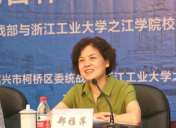郑雅萍代表学院对出席校地合作结对共建仪式的各位领导和民主党派成员企业家代表表示热烈的欢迎。她介绍了学院教学、科研、育人和统战工作情况。并就学院服务地方产业、校地人才多层次交流、发挥智库作用为地方建言献策,实现多方文化共享等与参会嘉宾做了交流。她指出,开展校地合作是学院建设一流的区域性应用型大学的需要,是进一步深化“面向需求、产教融合、开放办学、共同发展”的办学理念的需要。学院争创“五个一流”,本质上也体现为与绍兴、柯桥全方位合作的过程,在合作中提升学院的办学能力和水平,提升学院的人才培养质量,为区域经济社会的发展提供人才支撑和服务。希望合作双方共绘发展美好蓝图,结出互利共赢的丰硕成果。