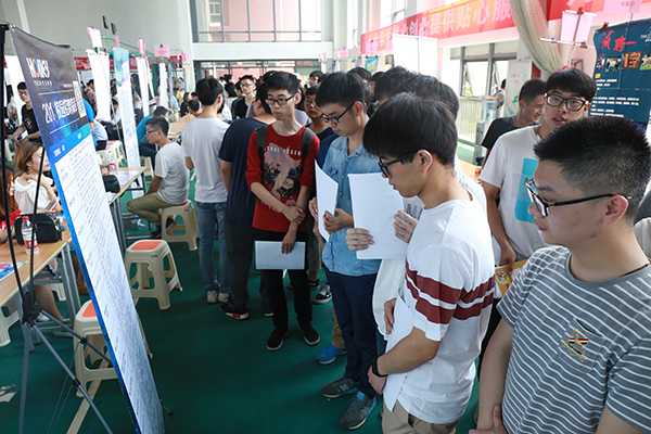 参会应聘的学生近4000人,约有30%的学生达成初步见习意向,现场气氛热烈。2014级学生(2018届毕业生)是本次招聘会主要参与人群,有95%以上的2014级学生参加了本次招聘会,这也是他们首次参加校园招聘会。学生参会积极性高,准备充分。大部分学生提前了解“心仪”企业信息,准备10份以上简历投递,以饱满热情初涉“职场”。学生纷纷表示,对于这次校园招聘会,他们期盼了3年,期望通过此次就业实战检验平时的专业知识水平,期望有更多机会能参加社会实践,提前锻炼和适应社会生活。据了解,不少企业2个小时就接收到了上百份学生简历。