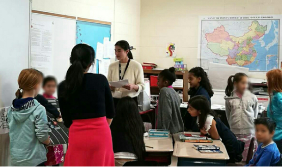 吴利华在瓦戴尔学校给美国小朋友上中文课
