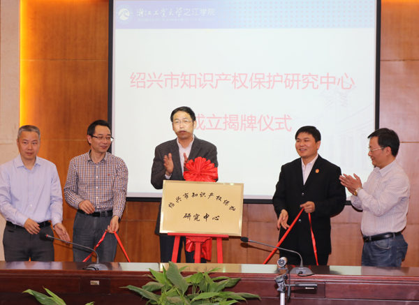 2017年4月19日,绍兴市知识产权保护研究中心在我院成立。学院副院长王河江出席,绍兴市科技局、绍兴市中级人民法院、市场监督管理局、律师协会负责人,学院相关职能部门、人文学院负责人,绍兴市上市企业闰土集团、盾安集团代表、教师学生代表三十余人参加了揭牌仪式。