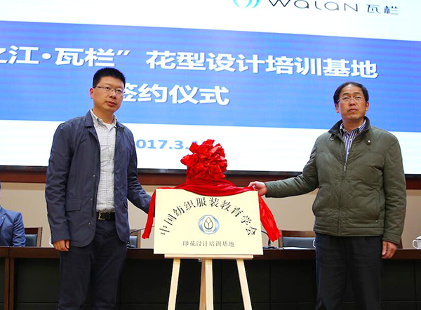 活动中,双方共同签订了“之江•瓦栏”花型设计培训基地的合作协议,并为中国纺织教育学会颁发的花型培训基地和入驻到地方研究院的金南元花型设计工作室进行揭牌。