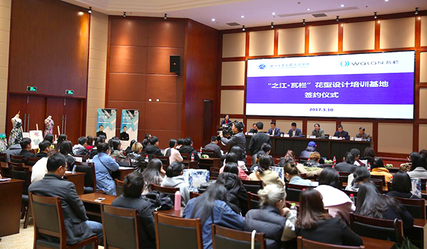 3月10日下午,学院地方研究院携手瓦栏文化创意有限公司在行健楼117报告厅举行共建“之江•瓦栏”花型设计培训基地签约仪式。学院副院长王河江、瓦栏文化创意有限公司总经理余国平以及学院相关部门负责人出席了签约仪式。