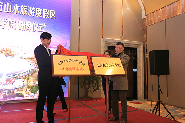 仪式上,李澎林与蔡治平为教育实习基地和之江东方山水学院揭牌,潘海涵代表学院与东方山水旅游度假区签署了校企合作协议。会后,嘉宾们一行参观了东方山水旅游度假区。