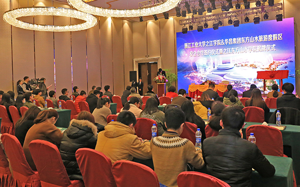 1月16日,学院与华昌集团东方山水旅游度假区校企合作签约仪式暨之江东方山水学院揭牌仪式在东方山水金沙酒店举行。柯桥区旅游局局长金秀芳,东方山水旅游度假区总经理蔡治平、副总经理闫志福、华昌集团人力资源总经理葛红娟,学院院长李澎林、副院长潘海涵,学院相关职能部门负责人、中旅(旅游)学院师生代表参加了签约仪式。