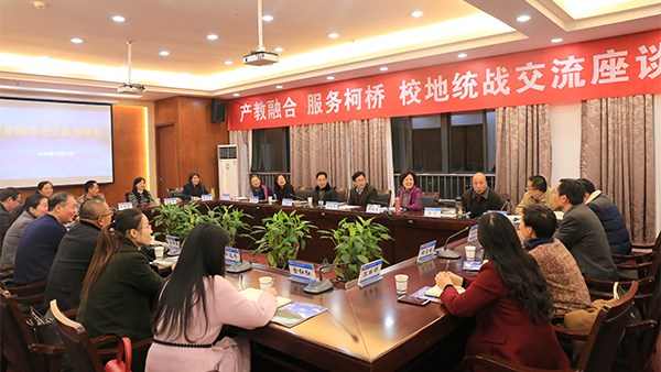 12月13日,学院与柯桥区统战部共同举行的“产教融合服务柯桥”校地统战座谈会在我院举行。学校统战部部长徐维祥,学院党委书记郑雅萍,柯桥区统战部副部长蒋建国,学院党委委员、统战委员何朝阳及柯桥区各民主党派代表,学院各民主党派教工代表20余人参加了座谈。