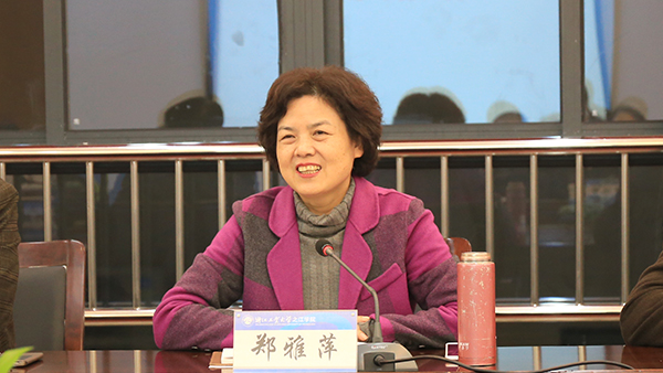 郑雅萍向与会人员介绍了之江学院的办学情况,发展思路和发展目标,并介绍了学院民主党派有关情况,学院现有民盟、民进、民建、民革、九三、农工等党派,有1个支部,20位成员。郑雅萍指出,学院党委历来重视统战工作,在学院召开的各类座谈会中,都会听取民主党派意见;民主党派成员在学院迁建、规范验收,应用型高校建设、限价商品房分配、聘任方案、民主管理和监督等方面,能积极建言献策,为学院产教融合、转型发展、快速发展提供了很多很好的建议。