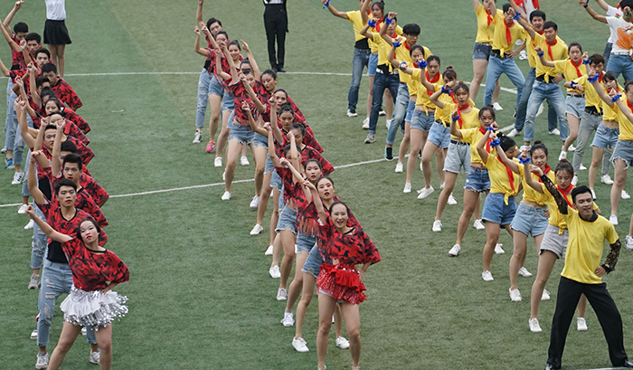 赛场上,运动员你追我赶,奋勇拼搏;赛场外,师生们为自己代表团的运动员呐喊助威,展现了良好的道德风尚。裁判员们恪尽职守,严肃认真,确保了本届运动会的“公正、公平”。工作人员周密细致地做好各项组织、服务工作,确保了本次大会有序、安全进行。