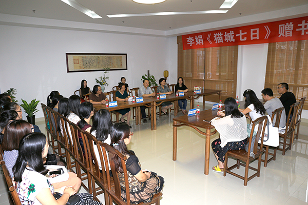 赠书仪式上肖瑞峰简要介绍了李娟创作经历,向读者分享了《猫城七日》的阅读感悟。柯桥区图书馆馆长陈关根介绍,柯桥区图书馆文学作品借阅量占总借阅量的百分之四十,表示将积极支持原创文学作品。