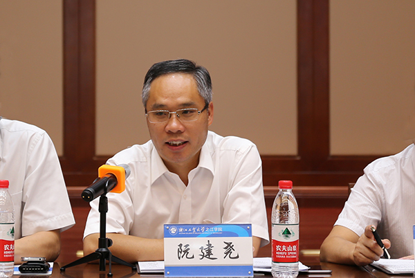 阮建尧首先代表区委区政府祝学院全体教师节日快乐!对广大教职工为学院事业发展来柯桥工作表示感谢!阮建尧指出,三年来,之江学院经过广大师生员工的共同努力,校园面貌已焕然一新,人才队伍不断壮大,为柯桥经济社会发展做了许多实质性的对接服务工作,目前,柯桥正处在经济结构、城乡结构、社会结构等调整的重要时期,要解决转型发展、绿色发展,关键是人才,为此,区委区政府大力气制定了全省领先的人才新政,全力打造金柯桥科技城,并把之江学院纳入了科技城范围,搭建发展平台,享受同等政策。最后,阮建尧表示区委区政府将积极创造条件,全力支持之江学院的发展,希望学院和政府共同努力,为学院和柯桥融合发展做出新贡献!