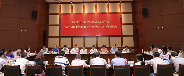 9月8日下午,学院召开2016年教师节高层次人才座谈会,学院董事长、柯桥区区长阮建尧,柯桥区常委、组织部长姚国海、学院院长李澎林、学院党委书记郑雅萍出席,柯桥区政府办、区委组织部、区委人才办、学校办公室、组织人事部、工会等部门负责人和学院高层次人才代表20余人参加会议。会议由郑雅萍主持。