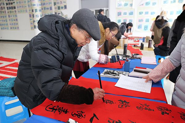 活动现场,师生们铺毡叠纸、挥毫泼墨,一副副喜庆吉祥、散发墨香的春联给腊月增添了浓郁的年味。春联中既有辞旧迎新、迎祥纳福的美好愿景,也有与冬日白雪胜景相映成趣、妙手偶得的锦联佳句。柯桥市民纷纷闻讯赶来,争相挑选师生们精心创作的春联,一行行潇洒俊逸的书法,一句句饱含深情的祝福,拉近了彼此间的距离,让市民们感受到了融融暖意。活动受到了市民们的喜爱和欢迎,在短短两天的时间里,师生们共送出春联700多副。