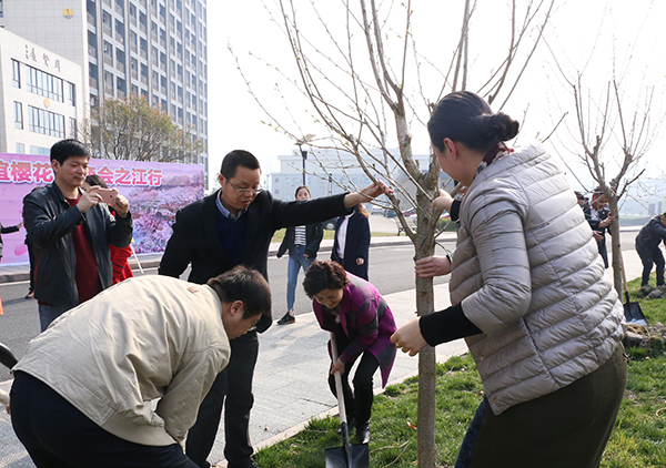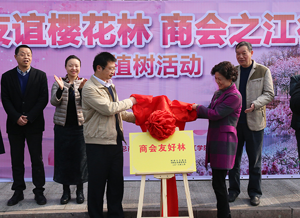 活动中,王志强和郑雅萍共同为“商会友谊林”揭牌,柯桥区工商联(总商会)向学院捐赠了80余棵樱花树,参加活动的嘉宾们在早湖畔亲手种下了这些象征友谊之树。