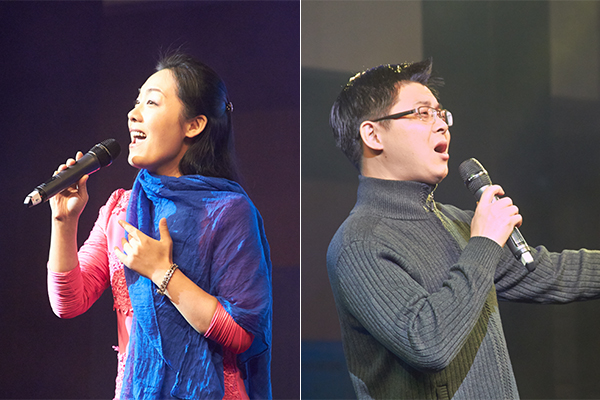 评委沈怡(左)、余其斌(右)现场深情献唱