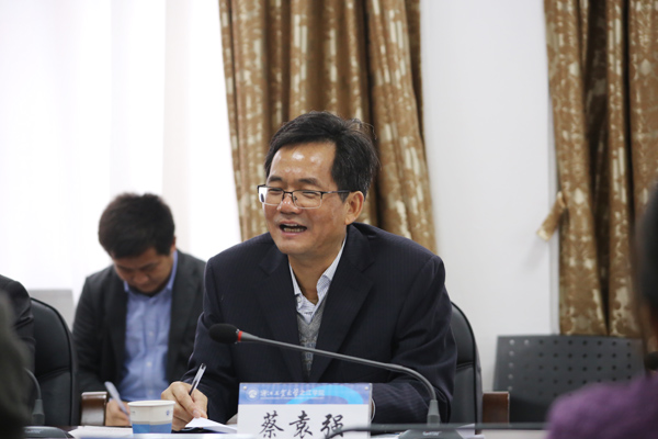 在与学院领导班子座谈会上,李澎林代表学院汇报了下一步发展规划和需要学校支持的工作。蔡袁强充分肯定了学院的迁建工作,高度评价全体教职工在迁建过程中的辛勤努力,同时对学院建设与发展提出几点要求:⑴明确办学定位。要紧紧抓住应用型大学建设的契机,创新理念理清思路,理念决定思路,思路决定出路;⑵加强与地方互动。之江学院要依托母体,服务地方,围绕地方经济社会发展的主要问题开展研究,不断提高自身服务水平;⑶树立长远目标。要以发展的眼光看问题,通过顶层设计、改革机制体制,把之江学院建设到新的高度。同时,希望广大教师要有作为,要到企业行业里挂职锻炼,成为“拿得起、下得去、放得下”的优秀教师;希望新校园能够一次规划、分期建设,既要解决当前需求,又要满足长远发展,把之江学院建设成与地方经济发展紧密融合的美丽校园。