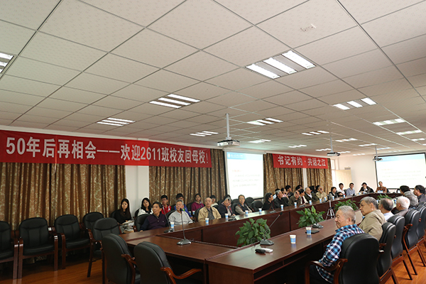 会上,2611班校友向学院教育基金会进行了捐款,同时与学生代表展开了深入沟通与交流,分别就“树立坚定理想信念”、“合理分配时间度过大学时光”、“实现人生价值培养幸福感”等话题展开热烈交流。老校友们表示,母校教会了他们学习的能力,获得了弥足珍贵的同学情和师生情,勉励“学弟学妹们”不负春光、努力读书。学生代表认真倾听老校友的讲话,受益匪浅,他们表示,老校友如同爷爷奶奶一样亲切,有着丰富的人生阅历与生活经验,听他们讲述人生故事,很受激励与鼓舞,会努力向老校友学习,做一个有用的人。