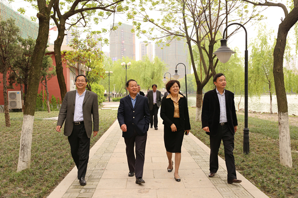 4月17日上午,校长张立彬、副校长肖刚,学校办公室,发展规划处,人事处,计划财务处负责人一行来我院绍兴校园调研。