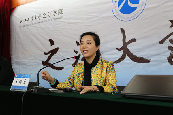 12月16日,之江大讲堂第十三讲在绍兴校园师生活动中心学术报告厅举行,香港卫视副台长、两岸四地品牌栏目《人文风情》总策划、制片人、著名电视节目主持人王明青女士应邀作题为“文化修行 艺术养心——新媒体时代知识分子必备的人文素养”的专题讲座,全院师生、校外人士共计250余人到场聆听。