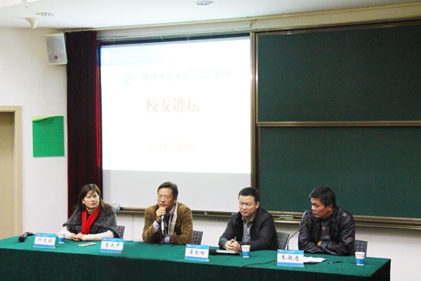12月20日, 89届校友何芝娟、屠余标、94届校友唐大卢做客校友讲坛,在绍兴校园与在校大学生畅聊大学生创业。学院党委书记郑雅萍出席并为三位校友颁发大学生创业导师聘书,讲座由人文学院朱敏忠老师主持。