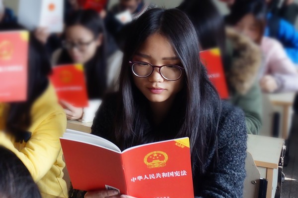 法学学生学习宪法迎接首个宪法日
