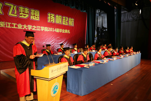 6月20日上午,学院2014届毕业生毕业典礼在杭州校园厚德台大礼堂隆重举行。校党委书记梅新林、校长张立彬、副校长肖刚,学院党政领导班子、中层干部、辅导员、班主任、教师代表和2014届毕业生参加了典礼,部分毕业生家长也应邀见证了这一庄严而又神圣的时刻。