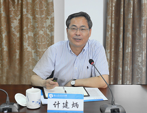 计建炳代表学院对李文江一行的到来表示欢迎,并对学院的基本情况、教学资源、管理模式、师资队伍、校企合作等情况做了详细介绍。郑雅萍重点介绍了绍兴校园的规划建设、人才引进及柯桥区政府对学院的政策支持等情况。