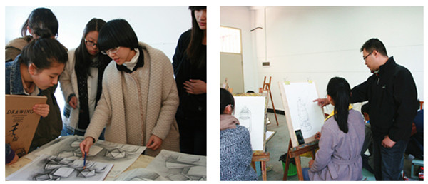 设计学院的夏雷老师今年主要负责新生的教学工作,见到他的时候,夏老师正在指导同学作画,他向我们描述了设计学院学生在进行素描、速写等课程学习时的状态:“有的同学在兴致高的时候往往一上午不起身,而有些同学疲惫时需要休息一下,起来走动走动,相互交流一下是常有的事,对于这种不同于普通上课的学习状态,我们提倡让同学们自己掌握半天的上课时间,给他们自由发挥的空间。”而在这样一种上课的环境中,看似轻松的老师们,其实要做的更多。如何及时发现问题,在适合的时机给予同学们指导,观察每一个学生的学习状态,了解和掌握他们的学习能力,都需要老师们更加灵活和机动。“我希望他们加强主动学习的能力,利用图书馆等资源自主学习,大学生应该有这种能力。而我们要做的就是在恰当的时候提示他们学习的思路,发现问题能够及时给予指导。”建筑学院的杨育人老师如是说。