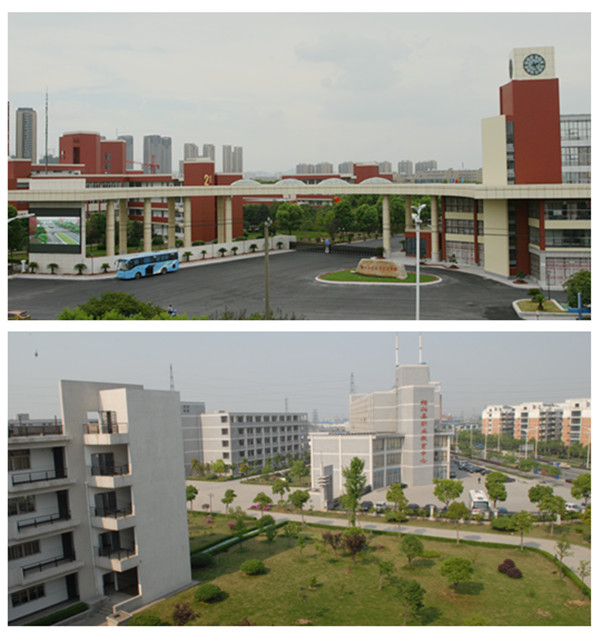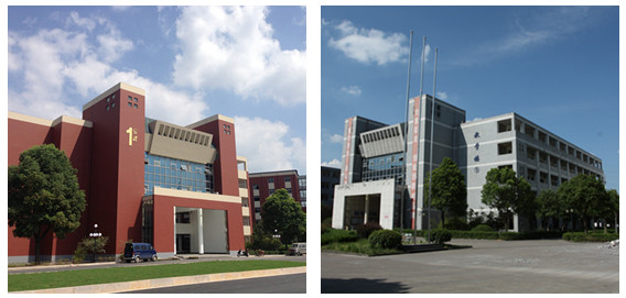 校园风光对比((左:学校绍兴校园景色 右:原绍兴县职教中心校园景色))