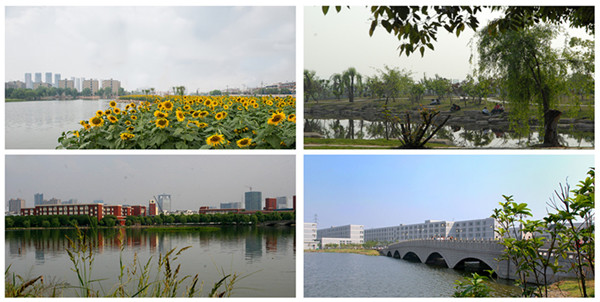 百米宽的校门,雄伟壮观,为学院增添了现代大学的气派;深邃悠长的林荫大道,让校园多了几分时光沉淀的历史感,隐约透露着岁月的痕迹;全新的校舍、崭新的跑道、宽阔的校园大道,诉说着大学的真谛;向阳而生、迎风摇曳的向日葵则展示出勃勃生机。当然,还有那因新生身姿点缀,显得更加灵动浪漫的早湖,幽幽地吐露着新的希冀……