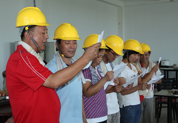 “咱们工人有力量……”高亢、嘹亮的歌声,吸引我们来到了学院迁建工作者的临时休息处。原来这是学院迁建工作者中的水电师傅们,在施工之余,以歌唱来娱乐。满腔的热情和昂扬的斗志,似乎让他们忘记了这夏日的炎热和满身的疲惫。