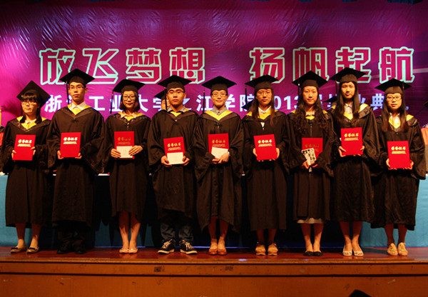 梅新林、张立彬与学院领导一起为优秀毕业生代表、优秀毕业设计(论文)获得者代表颁发了荣誉证书,向2013届毕业生代表、毕业生中的之江“先锋学子”授予学士学位,并于典礼结束后与毕业生们合影留念。